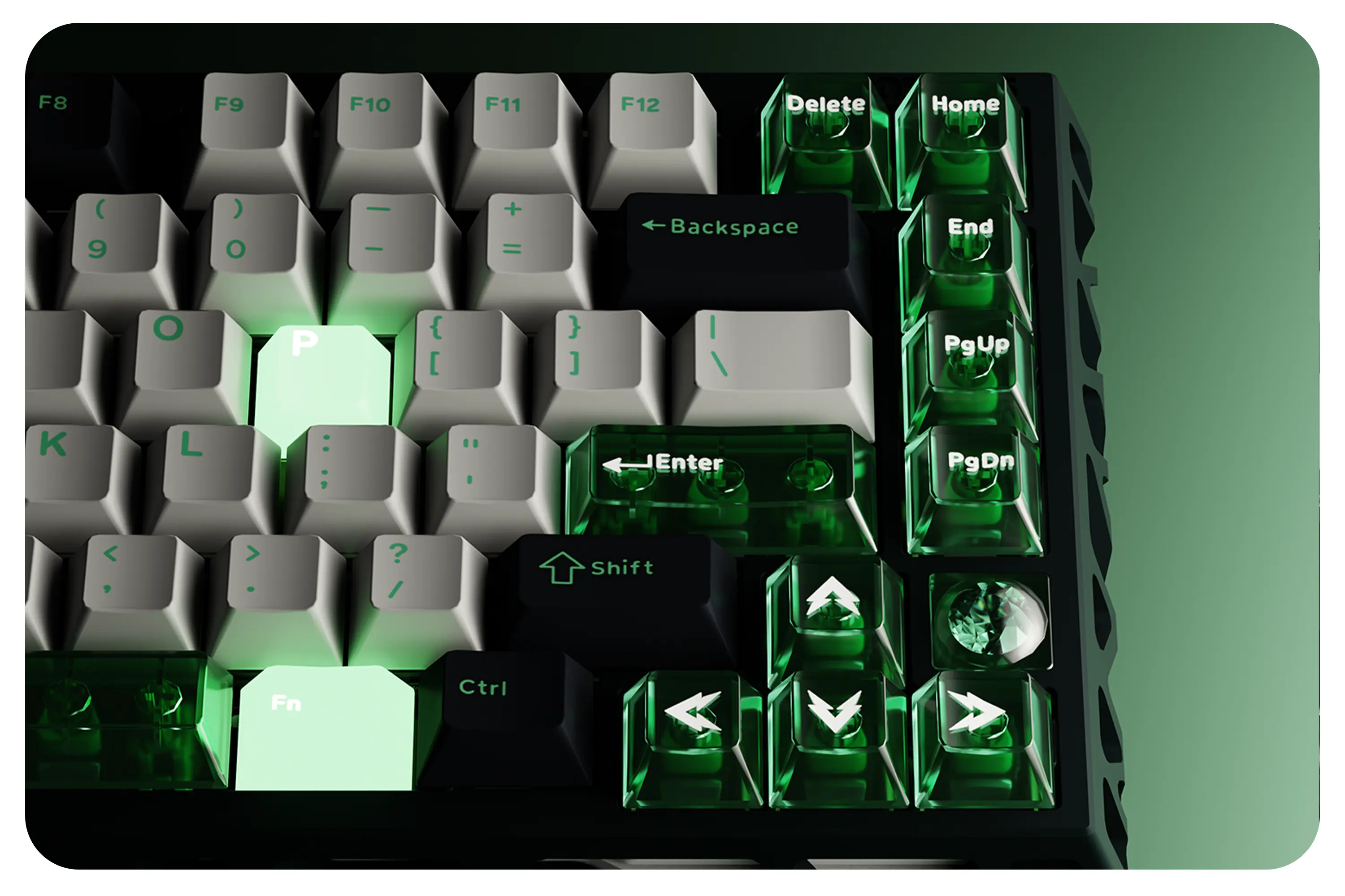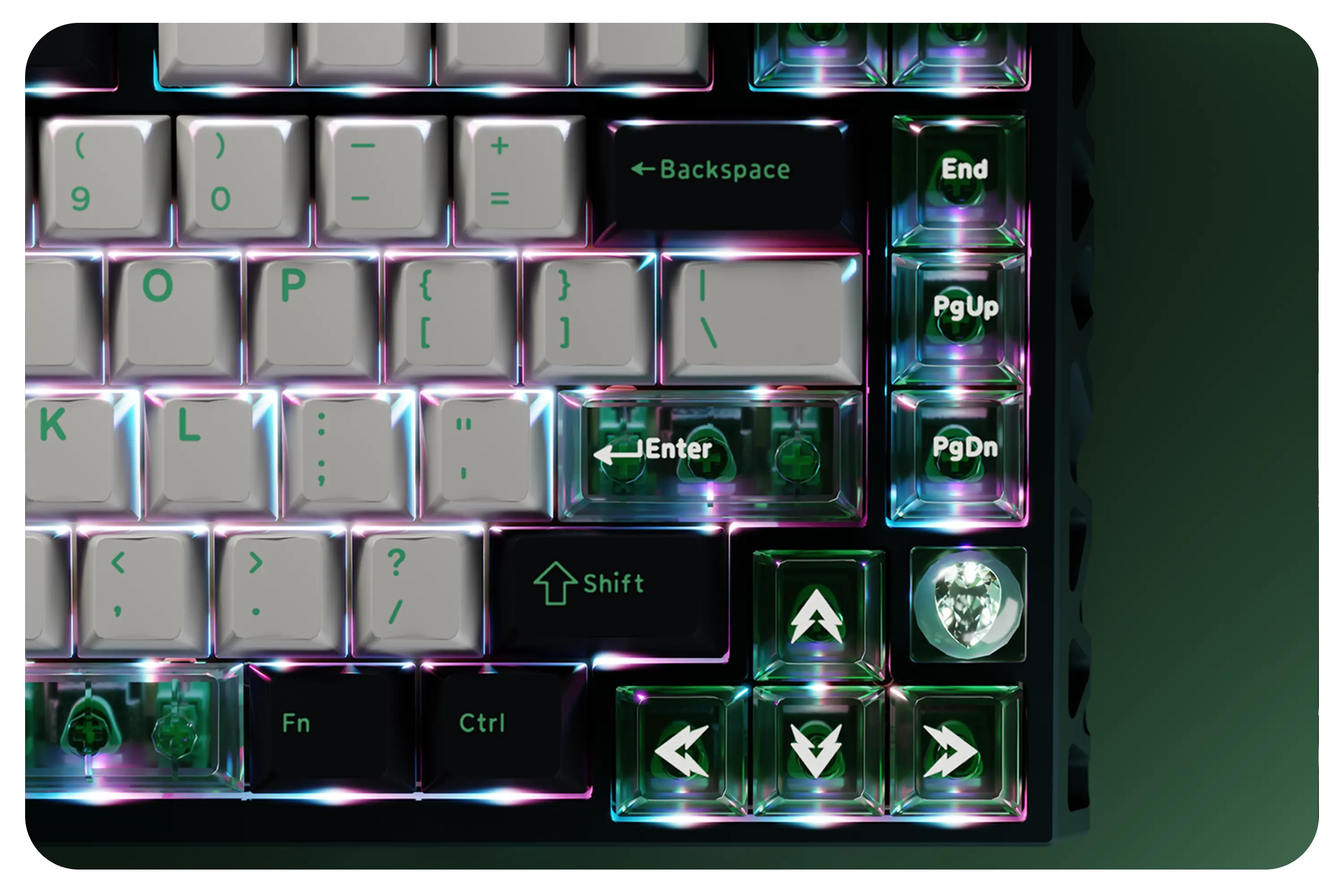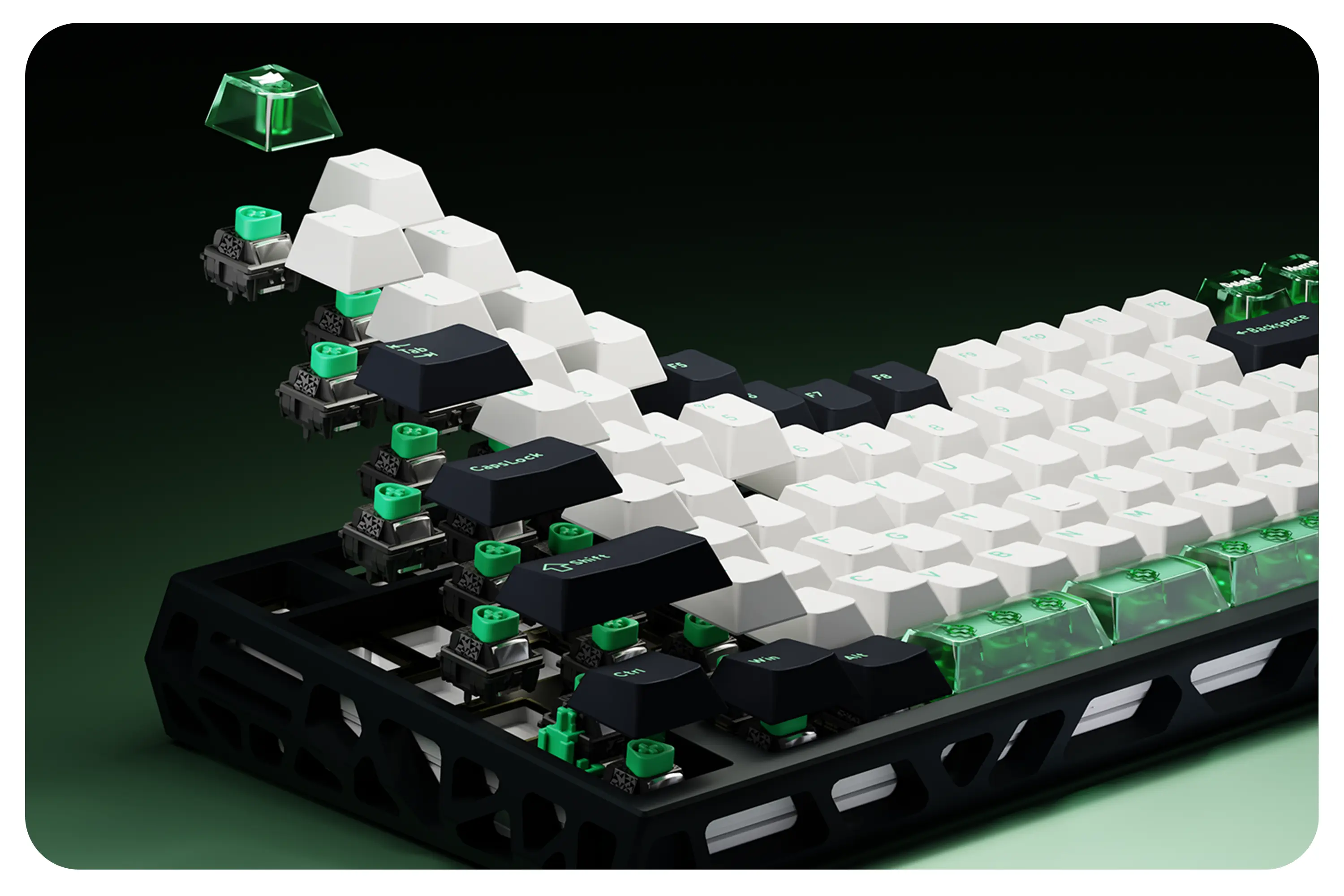 | The keyboard is equipped with Gateron magnetic-jade delta Light switches. Their triangular structure ensures ultimate stability, guaranteeing consistent actuation and zero mis-clicks. |